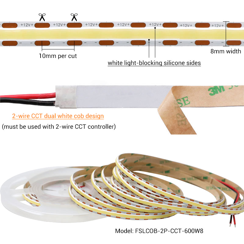 2 Wire CCT Changeable COB Accent Beam LED Tape 8mm