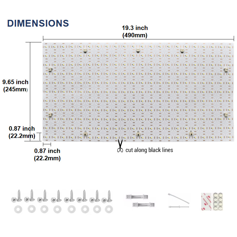 490mm x 245mm (19.3" x 9.65") flexible panel, each LED cuttable, trim to fit any custom backlight bar layouts