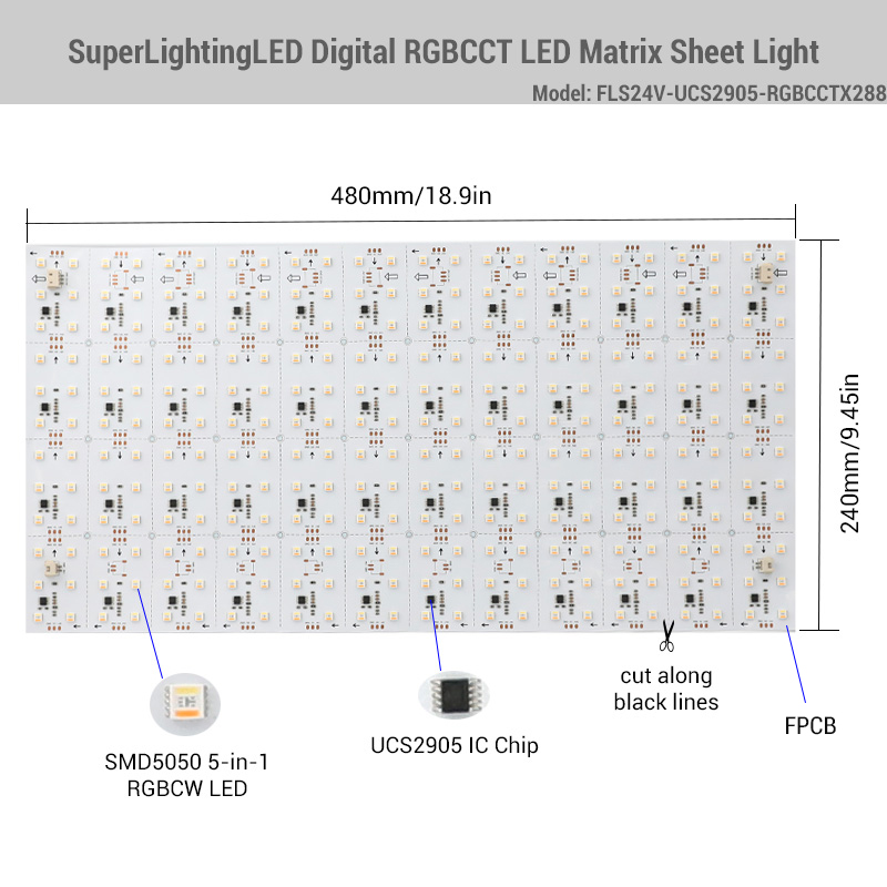 24V Cuttable UCS2905 5-in-1 RGBCCT LED Digital Matrix Light Sheet Flex