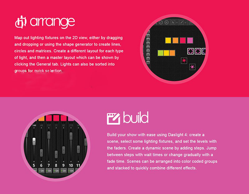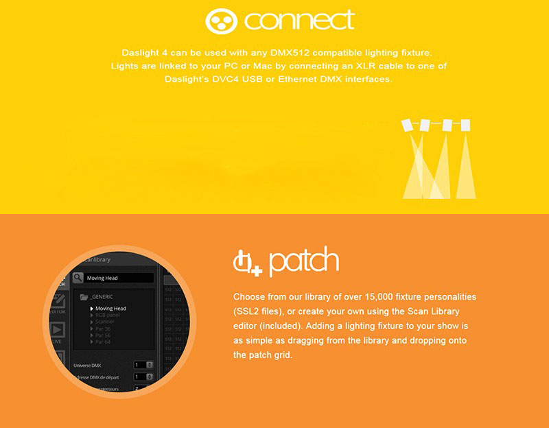 The DVC4 DMX Master series LED controller can be used with any DMX512 compatible lighting equipment. By connecting the XLR cable to one of Daslight's DVC4 USB or Ethernet DMX ports, the LED light can be linked to a PC or Mac. The DVC4 interface can be combined to access other DMX Universe. Use daslight 4 to easily create the lighting effects you want: create a scene, select some lighting equipment and use faders to set the level. The Daslight software can be downloaded for free, but it needs to be connected to the Daslight USB or Ethernet interface to convert the control data from the software to the DMX that the light can understand. Each DVC interface also includes independent memory to copy your program to the device and run it without a computer-this makes it an excellent choice for real-time backup or smaller programs. You can draw lighting fixtures on the 2D view by dragging and dropping or using Gennerator to create lines, circles and matrices. Create a different layout for each type of light source, and then click the "General" tab to display the main layout. You can also divide the lights into different groups so that you can quickly select them next time.