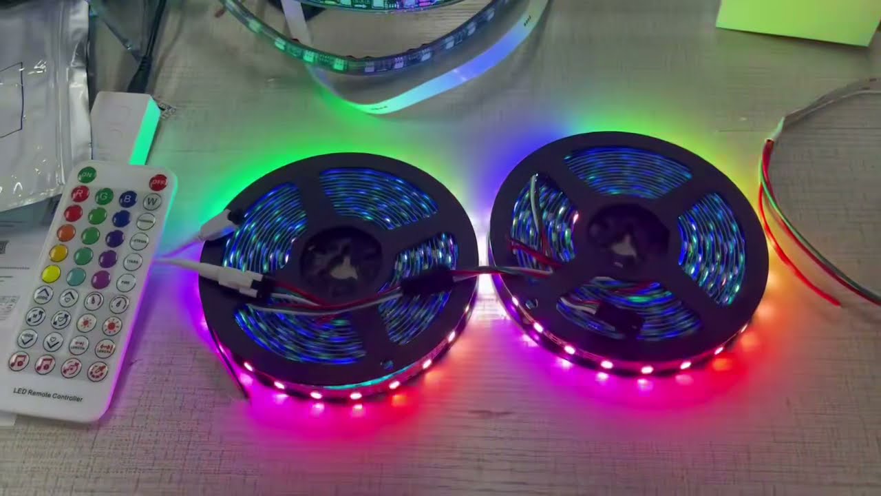 1. Universal WS2811 dynamic color chasing, sequencing, changing, and also static color modes available on the Full-Color Controller and dream color Strip. Addressable LEDs allow for sequencing modes. Flexible LED light strip with 300 LEDs high power 5050SMD(Surface Mounted Devices) RGB LEDs programmable for chasing patterns. WS2811 IC chip control, 1.64ft~16.4ft Per Reel By Sale.