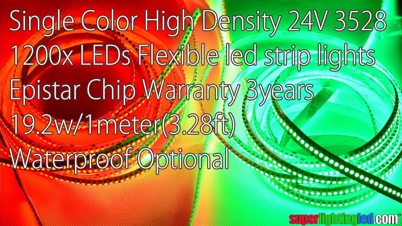 Our brightest Flexible LED Solid Color light Strips soft and easy bended for installation. Available in 5 meter (197 in) Waterproof optional flexible light strips with adhesive backing and can be stuck just about anywhere(IP67 IP68 type which will come with mounting brackets).The light strips of 12V DC can be cut into 3-LED segments, the light strips of 24V DC can be cut into 6-LED segments, so you could cut a different length for your project and request. The LED strips Suitable for the average home lighting as well as lighting professionals. 12/24V DC operation. Dimmable - See compatible LED dimmers.