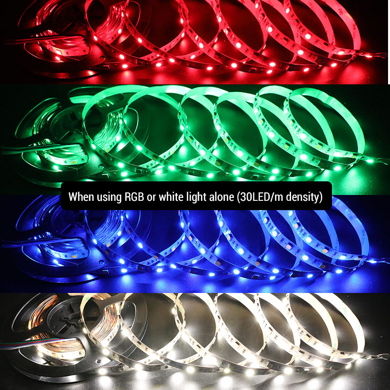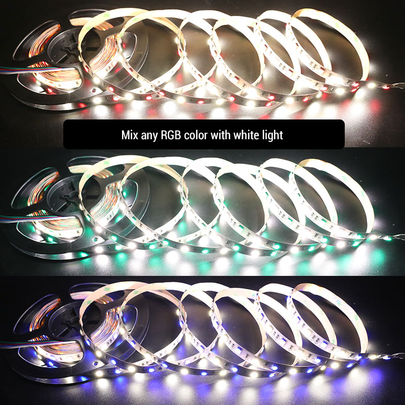Universal RGB+W color changing LED strip lights adapt 5050 LED RGB lights and 5050 white lights to mix to produce a wide variety of colors, suitable for mood lighting and task lighting. Use the RGBW controller to change the LED color, light brightness, and color mode. Provide warm white 3000K, natural 4000K, and daylight white 6000K led color temperatures to choose from.
