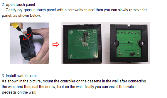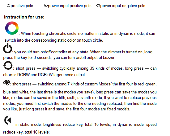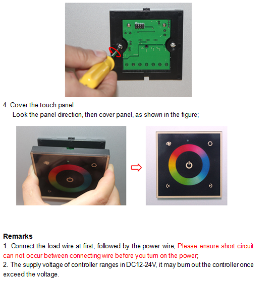 Touch panel controller is a new high-end controller which newly developed by our company. It adopts glass panel design, beautiful and fashionable in appearance. It adopts high precision capacitance touch control chip, increases the touch sensitivity, reduces trigger which caused by mistake. It is used for controlling a variety of lamp whose source of light is LED. For instance, point source of light, flexible light strip, panel lights etc., it has many advantages such as convenient to connect, easy to use and others. This controller can control RGB and RGBW led lamp, users don't need to purchase a variety of controller, then can achieve the effect you want, also RGBW mode can realize pure white light effect that RGB lamps and lanterns can't reach.